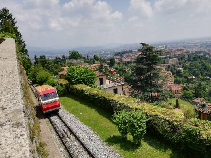 - Para visitar la Città Alta de Bérgamo hay varias formas de llegar. La primera es andando, la segunda con el autobús nº1 y la tercera, y más rápida y recomendada a través del funicular. El ticket vale 1,30€ y tienes 75 min para utilizar el funicular (ida y vuelta). Es decir, para visitar la Città Alta necesitaras dos tickets, mientras que para visitar el Castillo de San Vigilio, con uno es suficiente, ya que el castillo puedes visitarlo en menos de 75 minutos y por lo tanto, no hace falta sacar otro ticket.