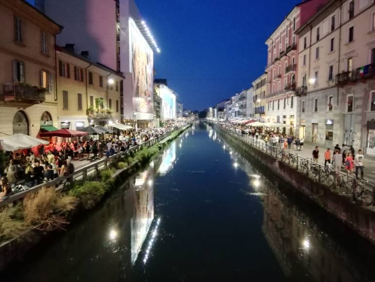 Cuando lleguamos a Milán, fuimos a dejar las maletas al hotel y seguidamente pusimos rumbo al barrio de Navigli, un barrio de ambiente para cenar, tomar algo, bailar…