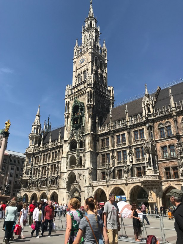 Este edificio se encuentra integrado en la Marienplatz, es uno de los grandes edificios que hay que ver en Múnich. Cada día la muchedumbre se apiña en la Marienplatz justo enfrente de la torre de central del nuevo ayuntamiento para disfrutar de su carrillón. Podréis verlo a las 11 y a las 12 del mediodía y en verano también a las 5 de la tarde.