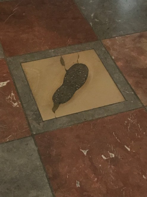 Una vez dentro, no os podéis perder la famosa “huella del diablo”, una huella que según la leyenda dejó el diablo enfurecido cuando descubrió que había sido engañado por el constructor del templo al poner ventanales a la catedral, y es que desde ese punto dada la geometría del edificio parece que no las hubiese. Cuando celebran misa en su interior, la huella es tapada para que no pueda regresar.