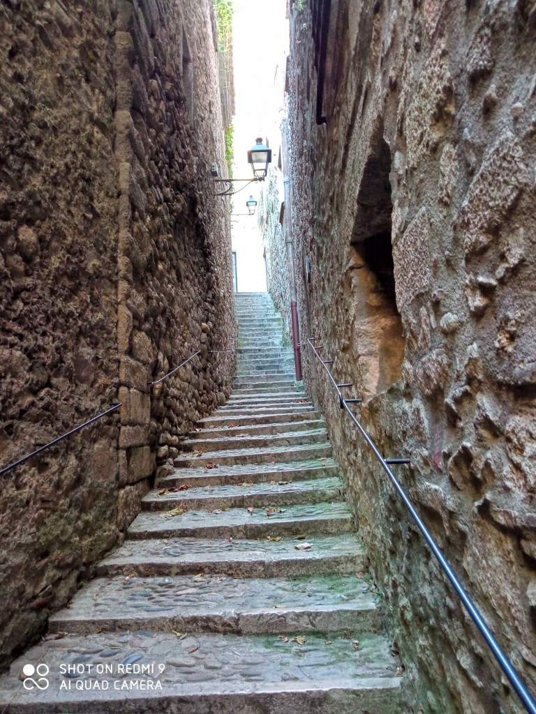 11. Pujada de Sant Domènec. Girona tiene muchos sitios con encanto y la Pujada de Sant Domènec es uno de ellos. A la caída del sol, hace que este sitio cobre romanticismo. Si te encuentras por la zona, te recomiendo que tomes algo en «Le bistrot» y disfrutes de la magia del lugar.