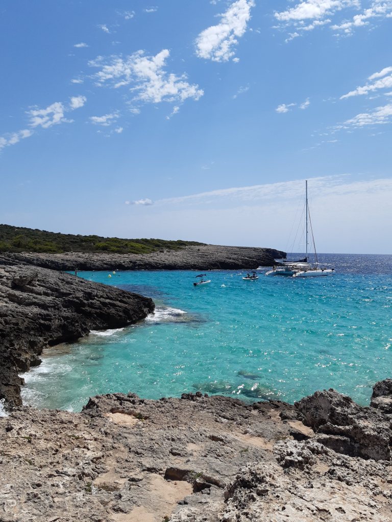 El arenal de Son Saura nos sorprendió bastante, se trata de una playa grande con arena blanca y aguas cristalinas. Dispone de parking para dejar el coche.
