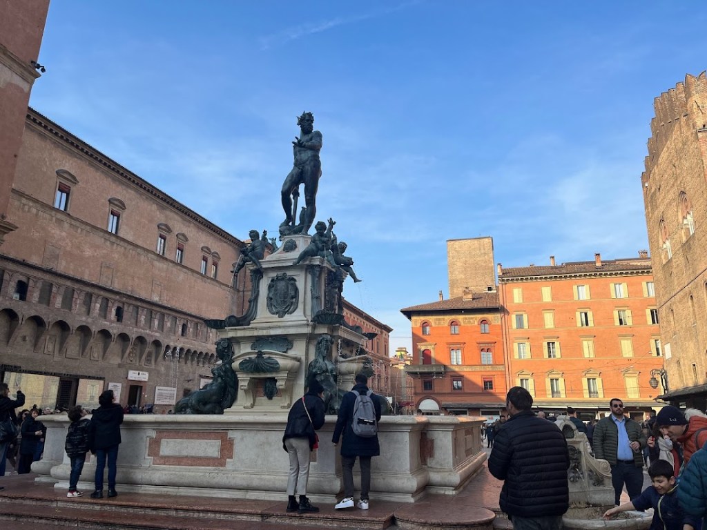 4. Fuente de Neptuno y sus atributos. La fuente de Neptuno es un símbolo de la ciudad situado en la Piazza Maggiore.